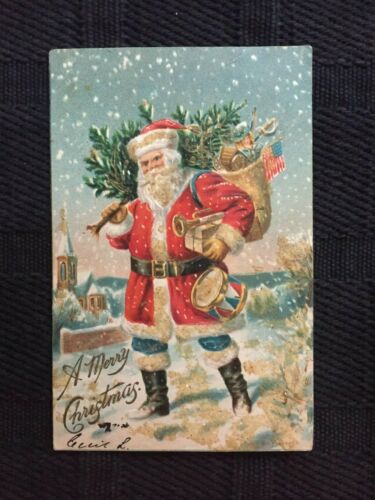 Title (ebay affiliate link): Antique Christmas Postcard - Santa with pack of toys IPC&N - glitter enhanced