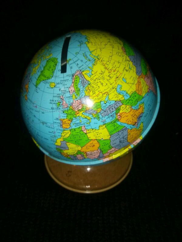 *Small Vintage Ohio Art Co. Bryan Ohio USA Tin World Globe Coin Bank *piggy bank