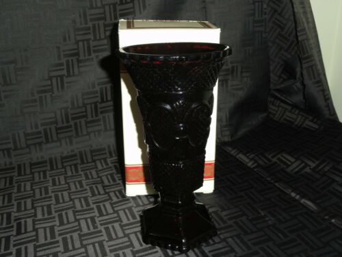 Avon 1876 Cape Cod Ruby Red Glass Footed Flower Vase 8" tall NIB w/ Box 1984
