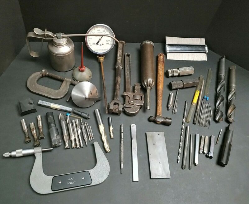 Machinist Tool Lot Starrett Cleveland + End Mill Tap Drill Micrometer Mitutoyo