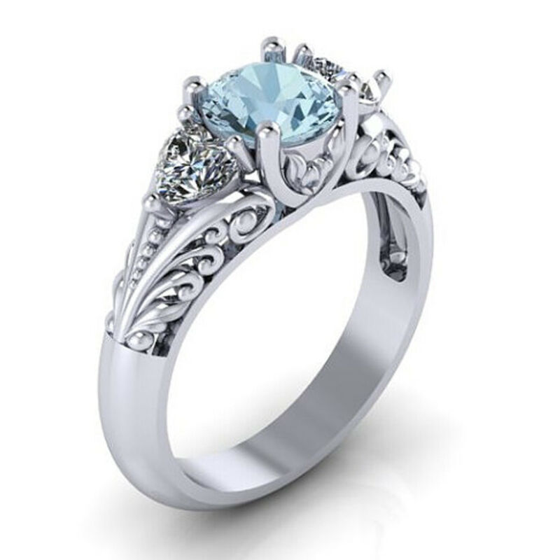 Title (ebay affiliate link): Antique 925 Silver Round Cut Aquamarine Floral Wedding Engagement Ring Gift Sz 6