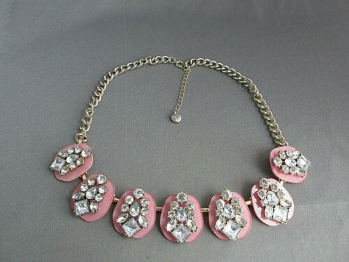 VINTAGE ANN TAYLOR LOFT GOLD TONE PINK RESIN MARQUISE PEAR EMERALD NECKLACE