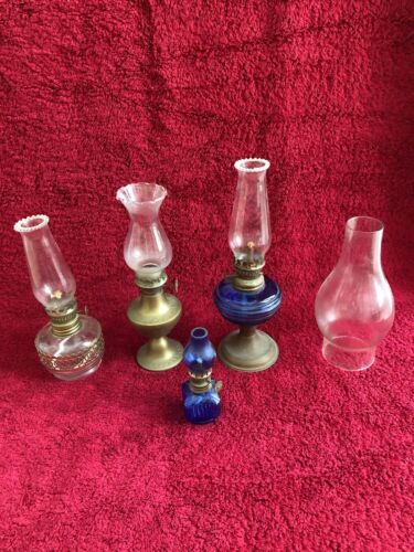4 X OIL / PARAFFIN LAMPS AND A GLOBE