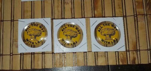 3 1968 anti Lyndon Johnson political pinback badges with mushroom cloud Viet Nam