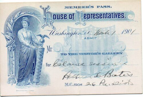 Title (ebay affiliate link): 64272. US House of Reps Pass March 1901 signed by Arthur L Bates Penn 26th Dist
