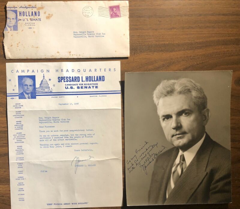 Title (ebay affiliate link): RARE! 1958 SENATOR SPESSARD HOLLAND (D-FL) SIGNED CAMPAIGN LETTER & PHOTOGRAPH