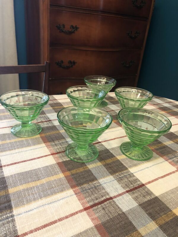 Title (ebay affiliate link): Set of 6 VTG Green Depression Glass Anchor Block Optic Dessert Sherbet Cups