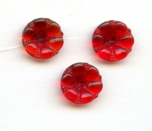 3 VINTAGE CHERRY RED DEPRESSION GLASS buttons--ALL the SAME--NICE DETAIL--9/16"