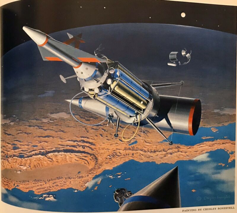 Title (ebay affiliate link): OLD VINTAGE MAN AND THE MOON - RICHARDSON BONESTELL SPACE BOOK 1961