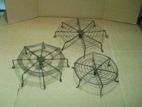 3 antique wire pot heat stand , tramp art, Sweden folk art 19/20th C