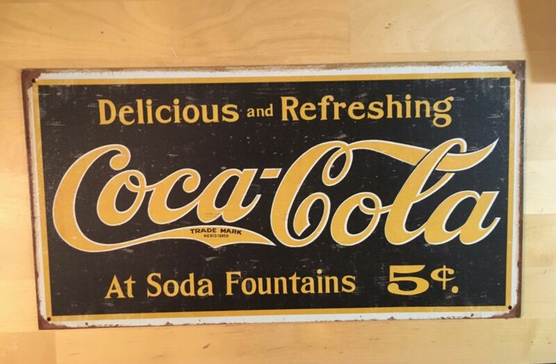 Title (ebay affiliate link): Coca Cola Coke 5 Cent 1800''s Logo Ad Retro Vintage Metal Tin Sign