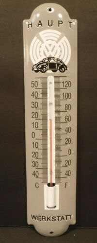 Haupt VW Volkswagon Werkstatt Porcelain Enamel Thermometer Sign 11.75" Long
