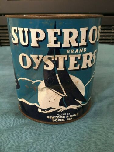 Title (ebay affiliate link): NEWCOMB & HAND SUPERIOR BRAND Oyster Tin Can 1 Gallon DOVER DELAWARE