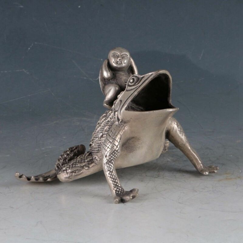 Exquisite Old Tibetan Silver Frog&Doll Statues