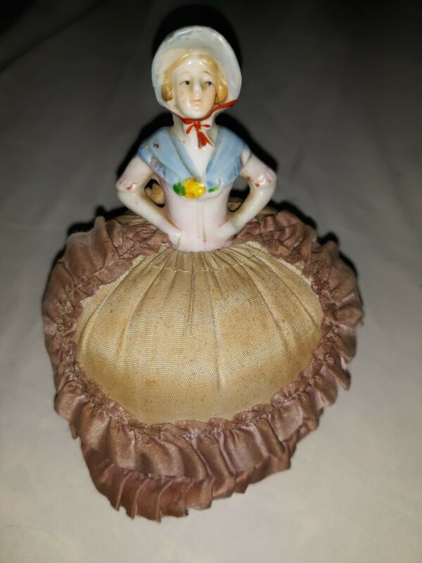 Antique Chalkware Half-Doll Pin Cushion.