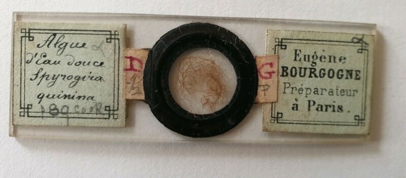 Title (ebay affiliate link): FINE ANTIQUE BOTANICAL MICROSCOPE SLIDE "ALGAE" EUGENE BOURGOGE