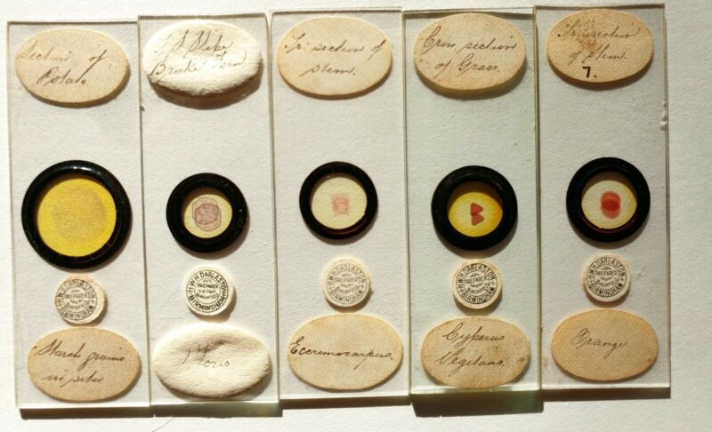 Title (ebay affiliate link): FINE GROUP OF 5 BOTANICAL SECTION MICROSCOPE SLIDES BY DARLASTON