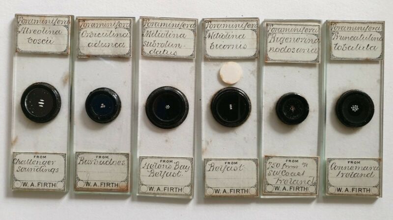 Title (ebay affiliate link): VERY FINE GROUP OF 6 CHALLENGER SOUNDING FORAM. MICROSCOPE SLIDES W.A.FIRTH