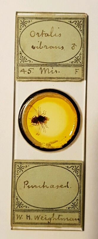 Title (ebay affiliate link): FINE ANTIQUE WHOLE INSECT MICROSCOPE SLIDE "ORTALIS" PICTURE-WINGED FLY