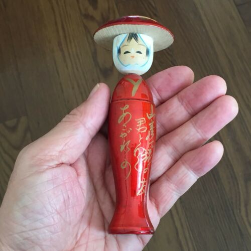 13.6cm Red Kokeshi Japan Wooden Antique No.AS1130