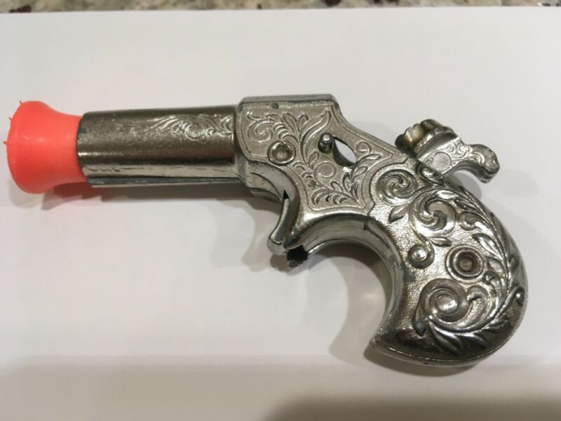 Title (ebay affiliate link): VINTAGE SMALL 3" DERRINGER CAP GUN SILVER-COLOR 1.9 oz ORNATE with SAFETY TOY