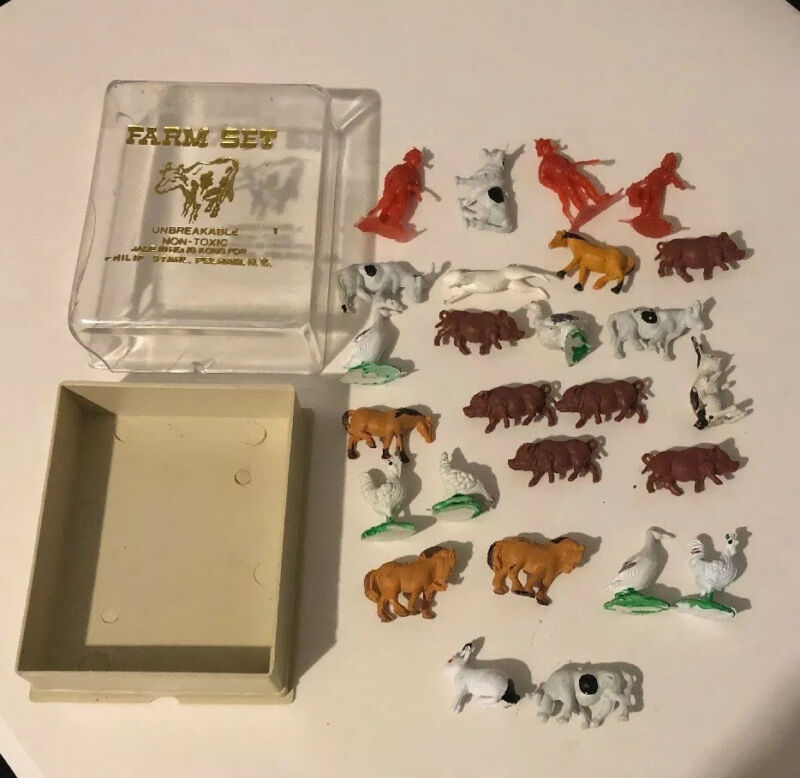 Title (ebay affiliate link): Farm Set Vintage Miniatures In Plastic Box, 26 Pieces Cows, Pigs, Ducks, Etc.