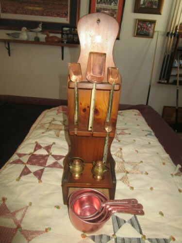 Title (ebay affiliate link): Vintage Wooden Hanging Measuring Spoon Holder w/Measuring Cups and S/P Shakers