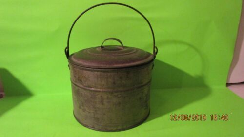 Title (ebay affiliate link): Vintage Antique Metal Tin Berry Bucket Lunch Pail with Bale Handle and Lid Cover