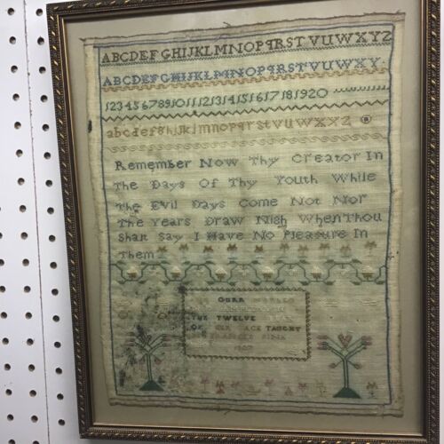 Title (ebay affiliate link): Antique 1807 SAMPLER AAFA "TEACHER IS MENTIONED" 10 x 12" AAFA