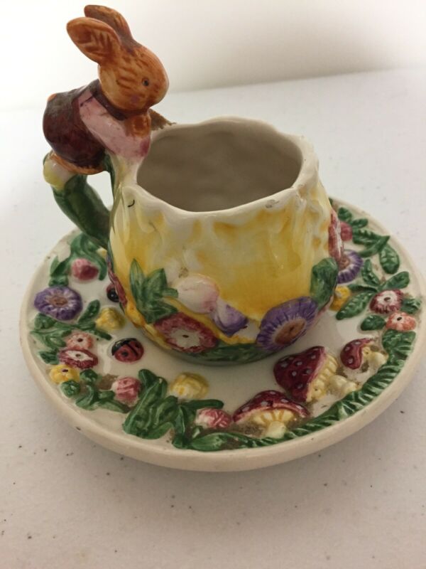 Merc Asia 1999 Rabbit Garden Tea Cup And Saucer