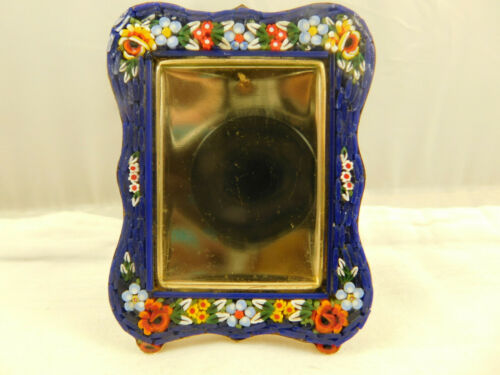 VINTAGE ITALY MICRO MOSAIC COBALT FLORAL DESIGN SMALL PICTURE FRAME