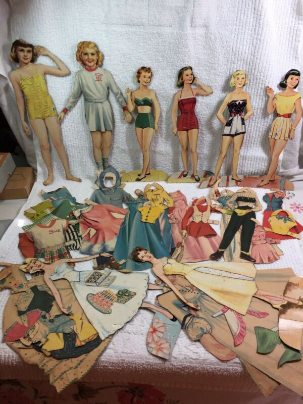 Lot Vtg 8 Paper Dolls & Clothes 1950s