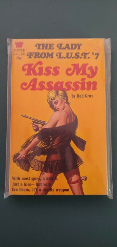 Title (ebay affiliate link): Kiss My Assassin by Rod Gray, 1968 Tower PB, VG+, Paul Rader Cover