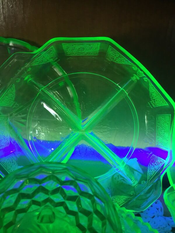 Title (ebay affiliate link): Vtg Green Depression Princess Hocking Glass 4 Part Relish Dish 1931-35