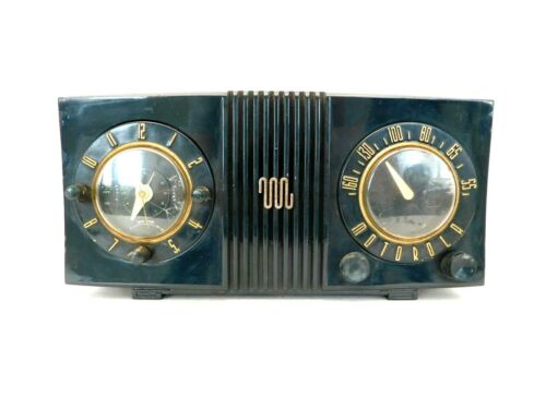 Title (ebay affiliate link): VINTAGE OLD 1950s ANTIQUE ATOMIC DARK GREEN MOTOROLA ART DECO TUBE CLOCK RADIO