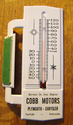 Old PLYMOUTH CHRYSLER Nebraska Dealer Metal THERMOMETER