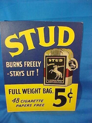Orig 1920s STUD SMOKING TOBACCO Cardboard STORE Display SIGN