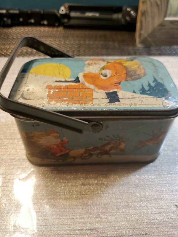 Title (ebay affiliate link): Vintage Tindeco Santa Twas the night before Christmas Candy Tin w/ Decorations