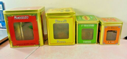 Vintage Estate MANDORLATO Tins Canister Nesting Stacking set Great Condition