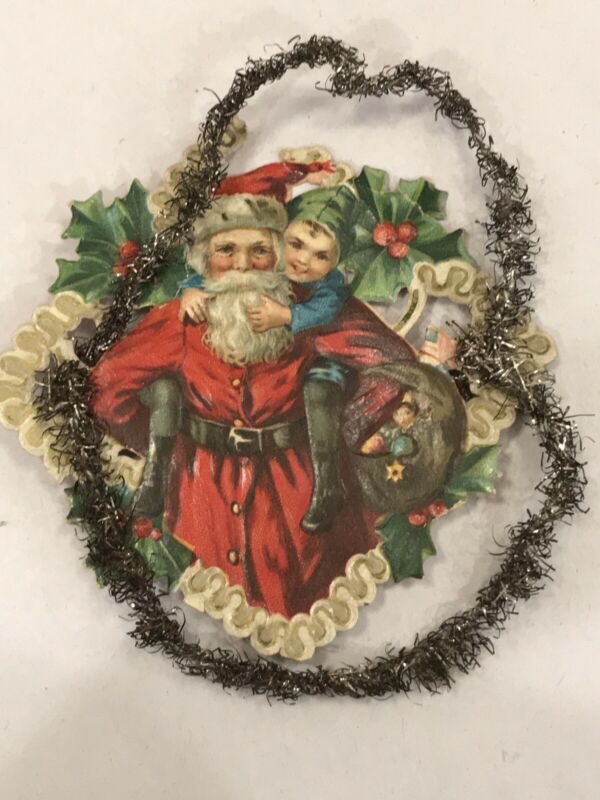 Title (ebay affiliate link): Antique Victorian Paper Scrap & Tinsel SANTA & Girl Christmas Ornament