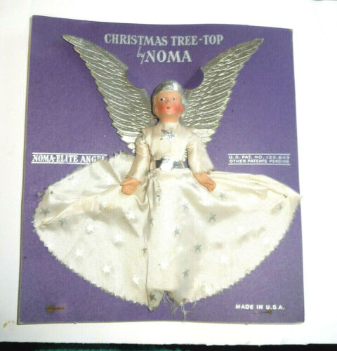 Title (ebay affiliate link): VINTAGE NOMA ELITE ANGEL CHRISTMAS TREE TOP 1941 STILL ON ORIGINAL CARD