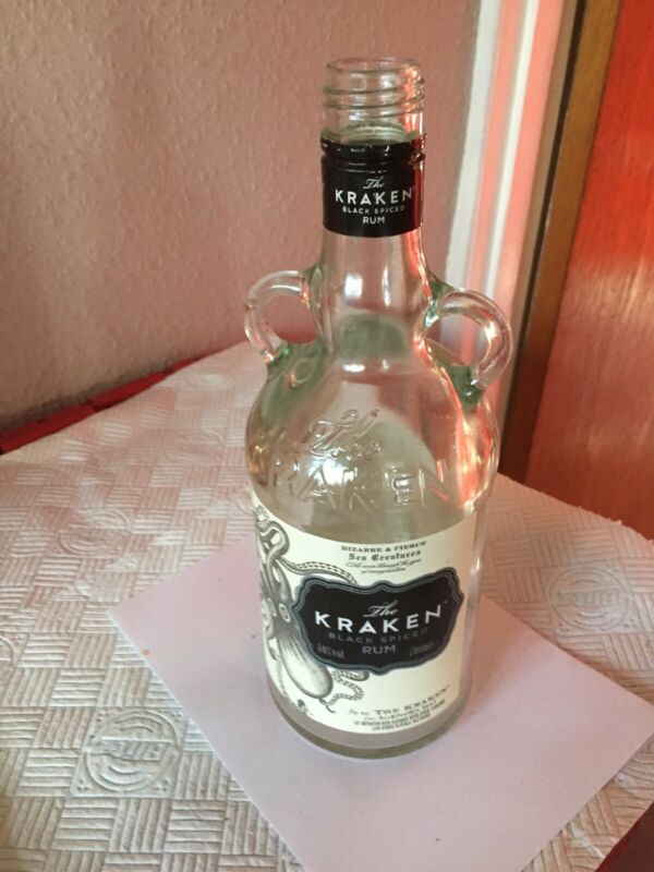 Title (ebay affiliate link): Empty Kraken spiced rum Bottle 100cl. Upcycle; Vase, Lamp, Candle