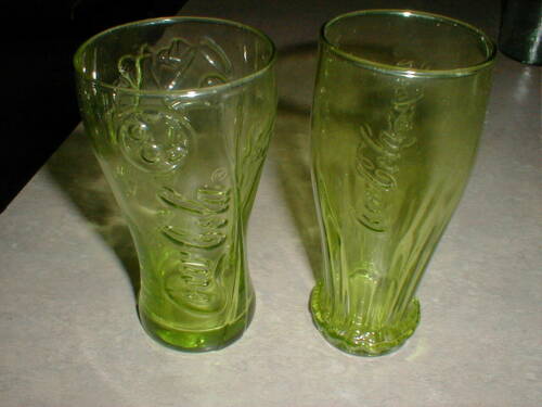 Title (ebay affiliate link): COKE Cola Glasses Green Unusual Different 6 1/2 inches tall.
