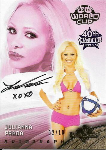 Title (ebay affiliate link): 2019 BENCHWARMER 40TH NATIONAL JULIANNA PRADA PURPLE FOIL AUTOGRAPH CARD /10