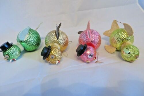 LOT OF 4 VINTAGE BUMPY GLASS & CARDBOARD BIRD CHRISTMAS TREE ORNAMENTS RARE