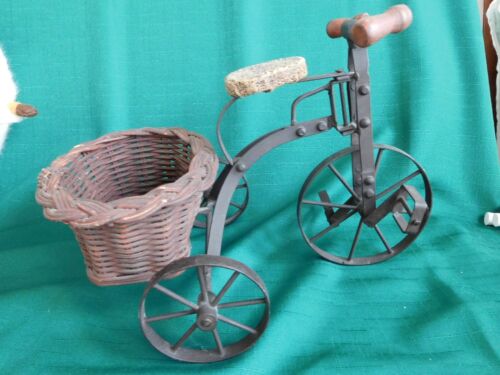 Title (ebay affiliate link): VINTAGE METAL MOVABLE TOY DOLL BICYCLE WITH WOOD, LEATHER & BASKET.