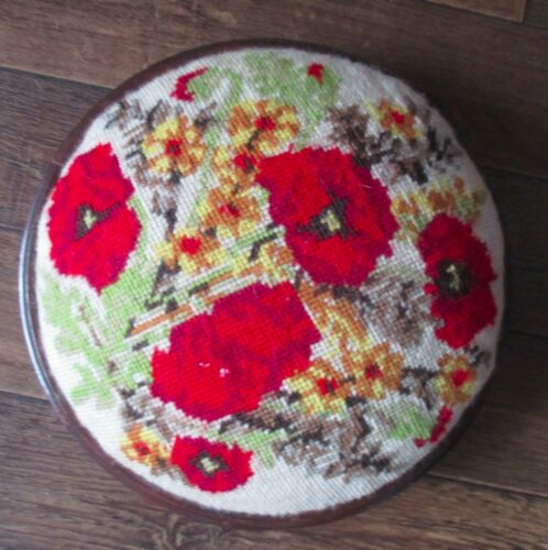Title (ebay affiliate link): ANTIQUE VICTORIAN POPPY FLORAL NEEDLE POINT FOOT/SLIPPER STOOL