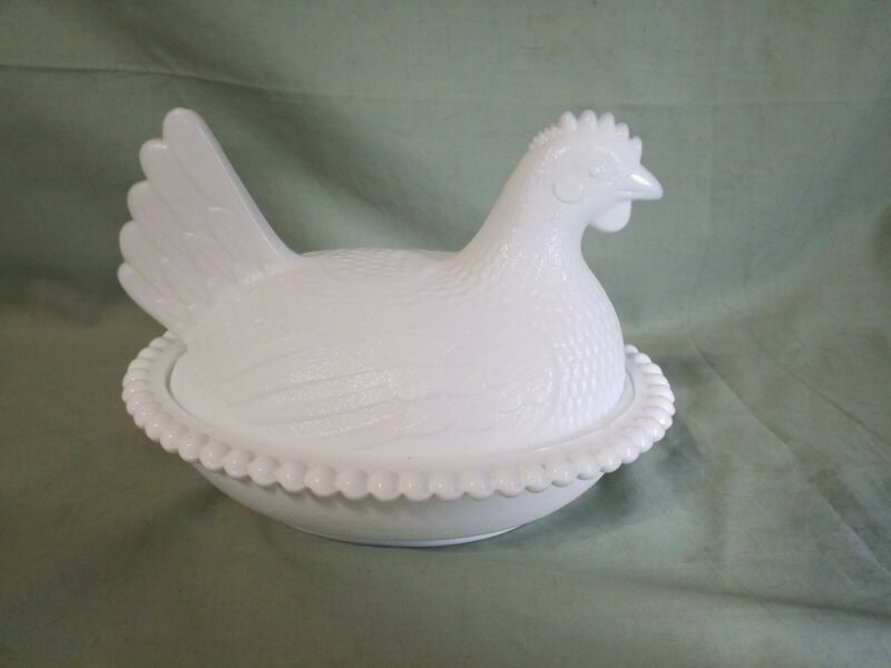 Title (ebay affiliate link): Vintage White Milk Glass Chicken Hen On A Nest Covered Candy Dish 6" tall