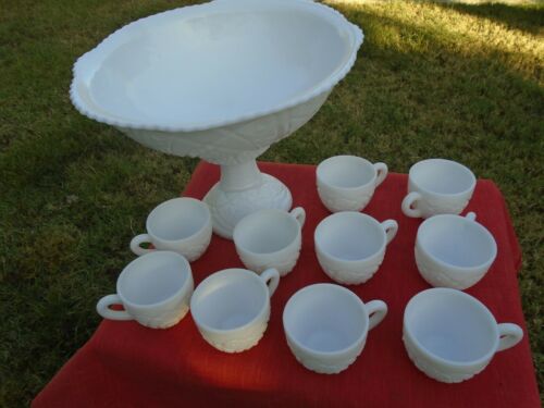 Vintage Milk Glass Punch Bowl Set 10 cups