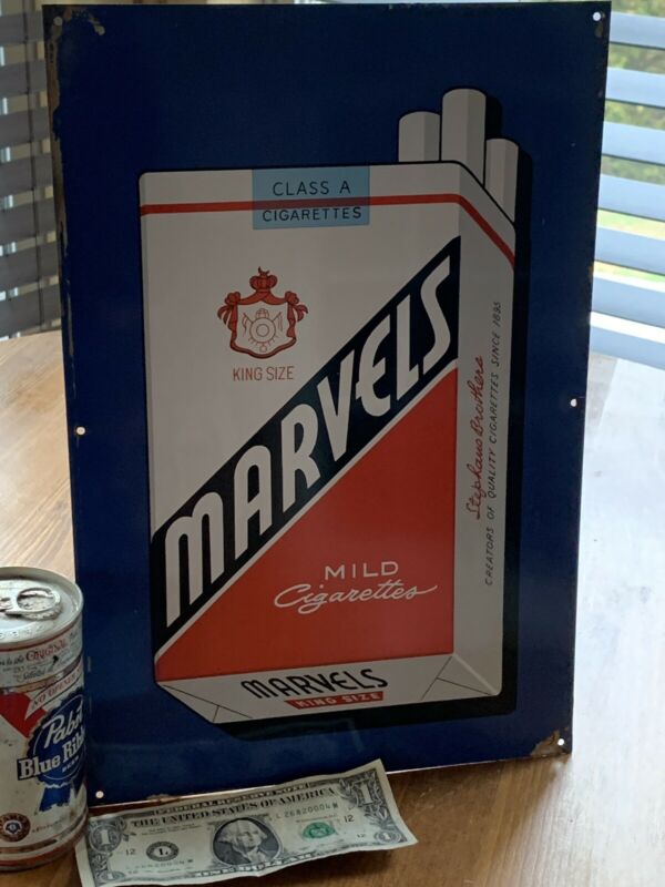 Vintage Original Marvels Cigarettes,1950s Sign Tobaccos, Oil, Gas, Soda, Pop